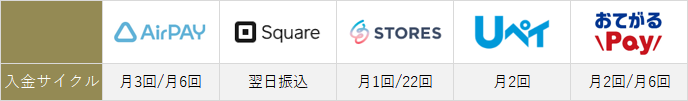 - 中でも「初期費用が無い・対応サービスが多い・入金サイクルが多い・入金手数料が安い」という観点からエアペイがオススメ