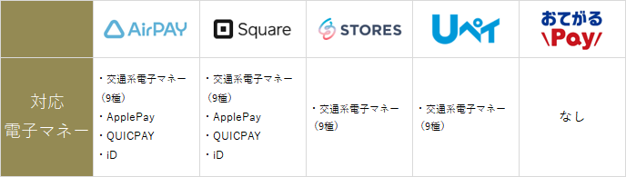 5社の各項目を比較してみた⑦対応電子マネー