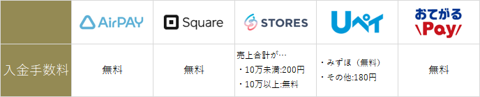どこのサービスも基本的には「決済手数料」を収益源としており、固定費用は取っていません。