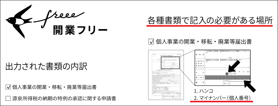 この中で最も重要なのが「個人番号」ですが、個人番号は印刷後に自ら記入しますので、freee側に知られる(保管される)事はありません。