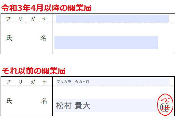 実際、令和3年4月以降の開業届では「押印欄」は廃止されています。