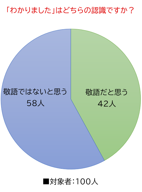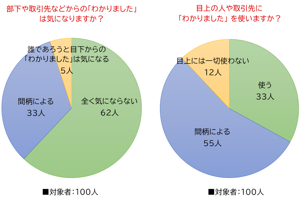 ちなみに今回、『わかりました』という言葉に対する認識について、100人に対してアンケートを取りました。
