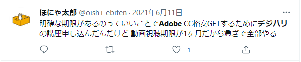 この記事ではもともと『デジハリのデメリットは1ヶ月しか動画視聴できないことだが、逆に1ヶ月という期限があるからこそ知識を詰め込もうと頑張れる』と伝えております。