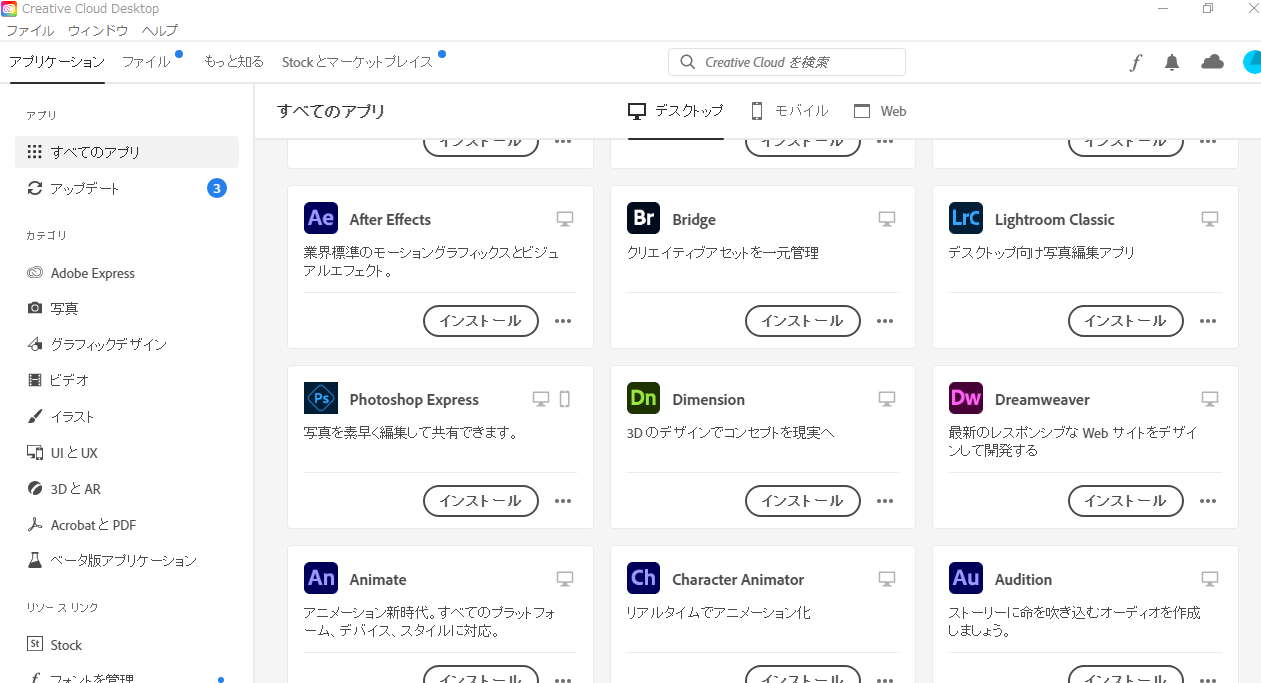 とりあえず「アプリ・サービス」としては、通常のAdobeCCとなんら変わらず使えることが分かって頂けたかと思います。