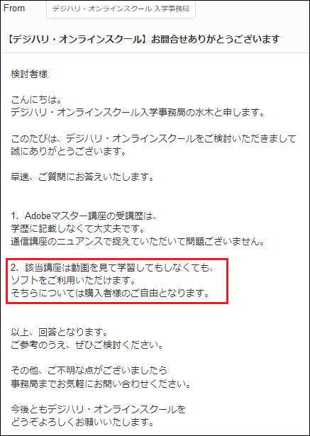 ▽アドバンスクールへ問い合わせた結果▽