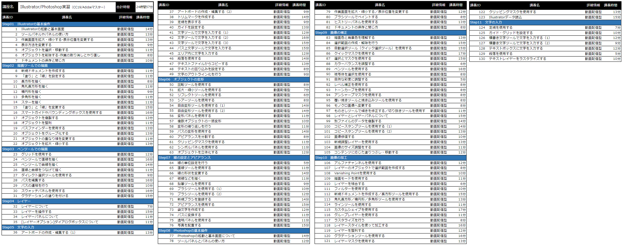 イラレ・フォトショについては約24時間分の動画があります。